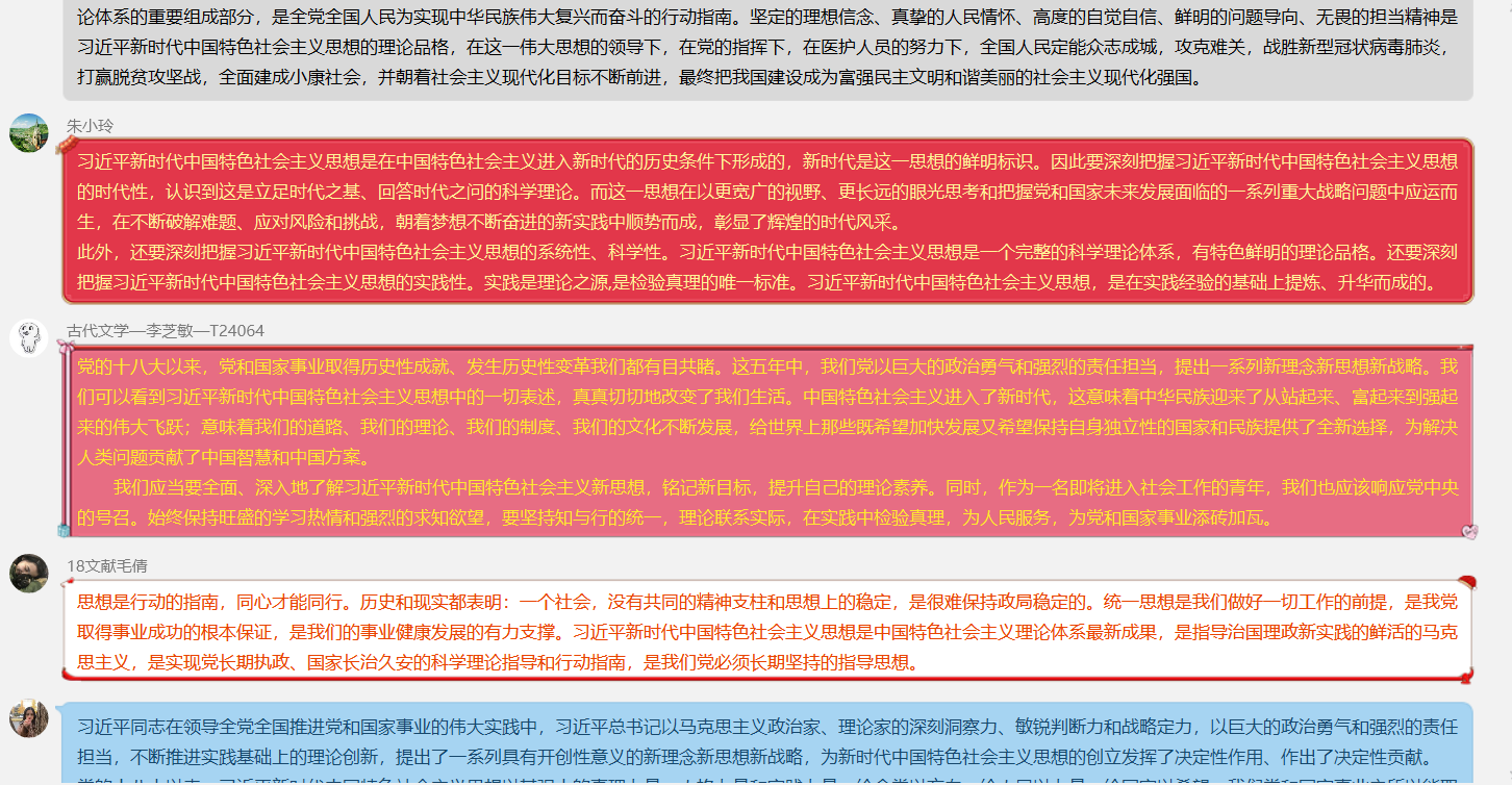 第二项学习内容为学习领会习近平新时代中国特色社会主义思想的基本精神、基本内容、基本要求,同学们通过深入学习、思考习近平新时代中国特色社会主义思想是怎样形成的、核心内容是什么、为什么将其称为21世纪马克思主义这三个问题,进一步完善各自对“习近平新时代中国特色社会主义思想是党和国家必须长期坚持的指导思想”这一结论的认识。通过学习,支部成员李芝敏表示,党的十八大以来,党和国家事业取得历史性成就、发生历史性变革我们都有目共睹。这五年中,我们党以巨大的政治勇气和强烈的责任担当,提出一系列新理念新思想新战略。而作为即将进入社会工作我们,更应该响应党中央的号召。始终保持旺盛的学习热情和强烈的求知欲望,要坚持知与行的统一,理论联系实际,在实践中检验真理,为人民服务,为党和国家事业添砖加瓦。