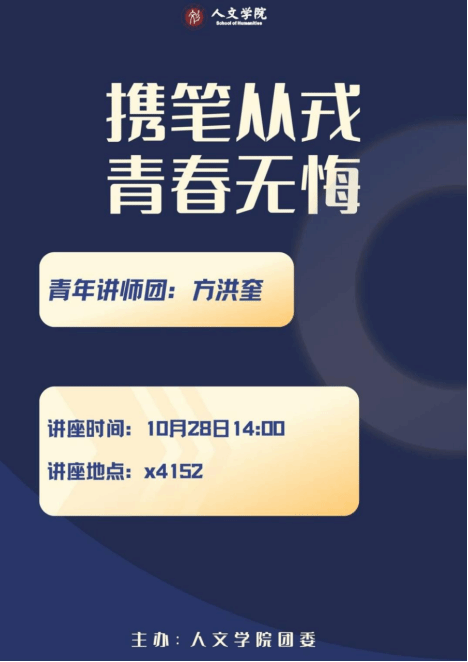 参军的荣耀是一种无法言喻的荣耀,是对爱国情怀和国防意识的认同和表达,对于年轻人来说,参军既是一种责任,也是一种荣誉。为鼓励更多老员工参军入伍,从2016年起教育部设立“退役老员工土兵专项硕士研究生招生计划”,专门招收退役老员工士兵攻读硕士研究生,方洪奎学长就是其中一员。本次宣讲会以“携笔从戎 青春无悔”为主题,将以个人故事的形式上升到爱国爱党、建功立业等方面进行讲述。