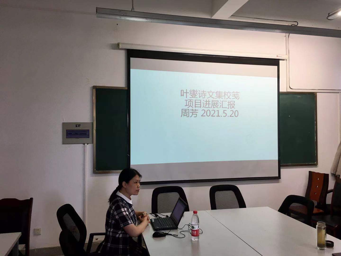 在答辩会上,刘玉珺教授向专家展示了自己主持的国家社科基金重大项目《中越书籍交流研究(多卷本)》的进展情况,包括每个子课题的进展情况,团队参加的国际性会议,项目组发表的论文等。周芳老师汇报了自己主持的全国高校古委会项目《叶燮诗文集校笺》的进展情况,包括参加的学术会议和出版的专著等。