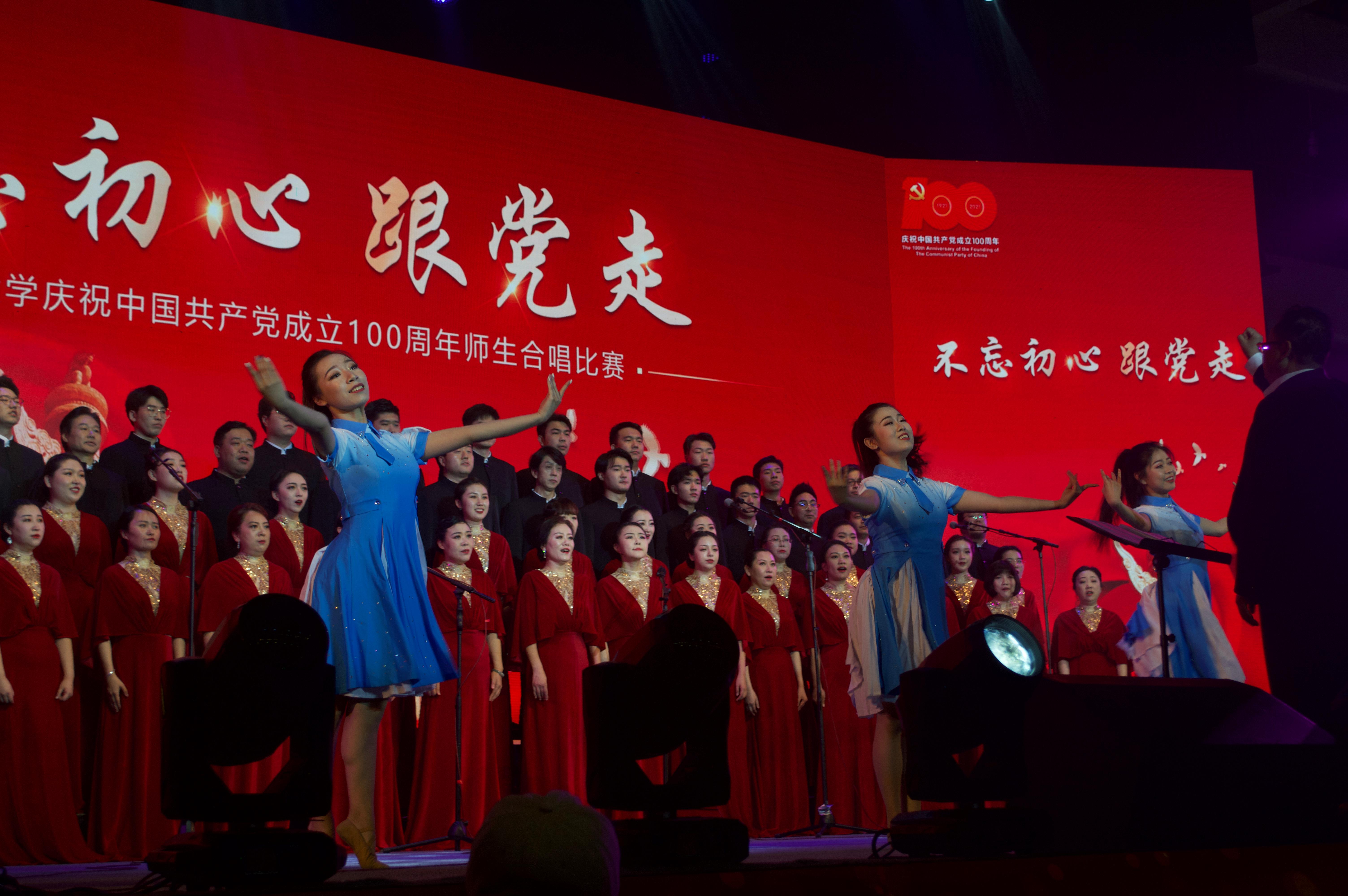 从《在太行山上》到《唱支山歌给党听》,从《明天会更好》到《走进新时代》,一首首经典歌曲,回顾了100年来党发展的艰辛与不易,歌颂着如今幸福美满的生活,更是饱含着对未来无限的希望与憧憬。各个学院用精心准备的歌曲,向祖国表达爱意,为党的百岁生日献礼。