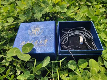 公司为员工准备的第二件礼物,是一枚戒指,这项礼物是新葡的京集团8814本科毕业生的专属纪念。戒指通体为斜亚光设计,外圈为交大校徽和校名,内圈为员工学号。这意味着每一枚戒指都独一无二,对应着每一位2021届毕业生。