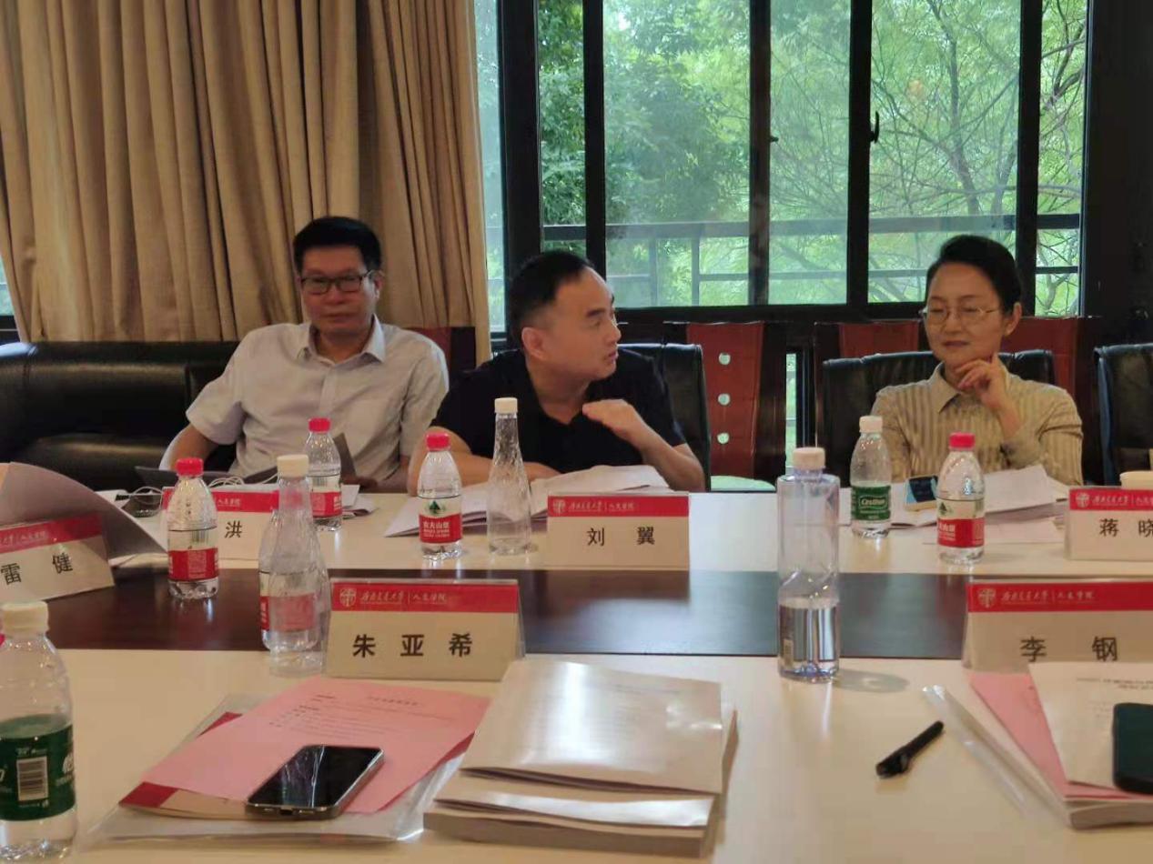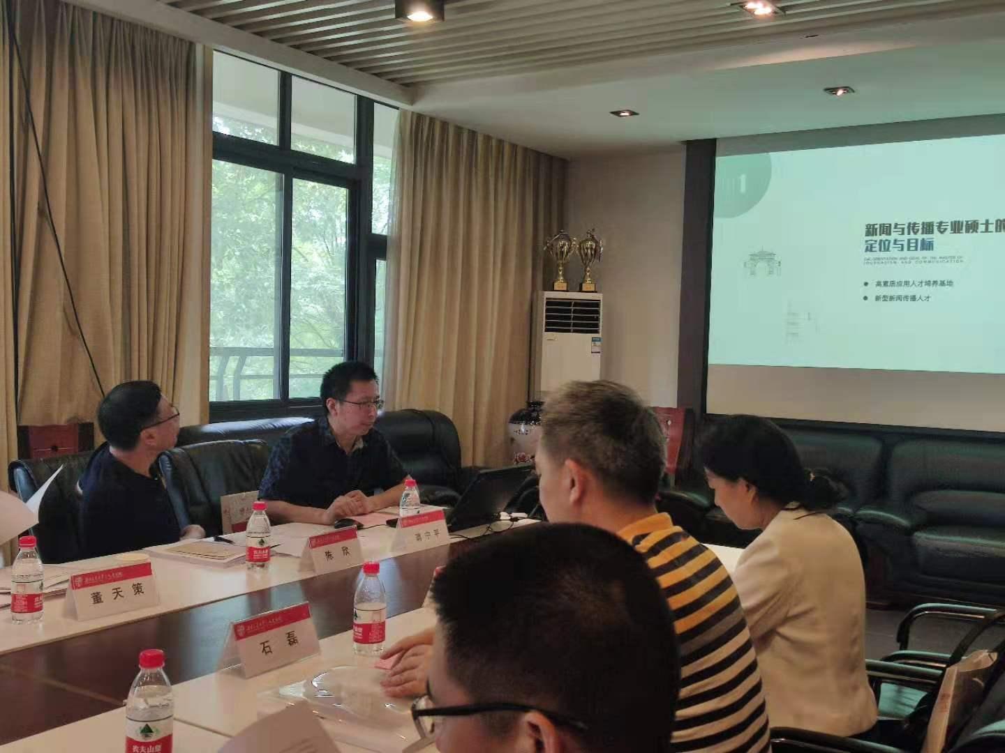 接下来,传播系主任蒋宁平教授对西南交大新闻与传播专业硕士学位点的建设情况做汇报。他从学位点的定位与目标、团队结构、员工培养情况、实践基地建设情况等诸方面进行了总结,并分析了目前学位点建设上存在的问题与不足,最后,提出了该学位点下一步的建设思路。
