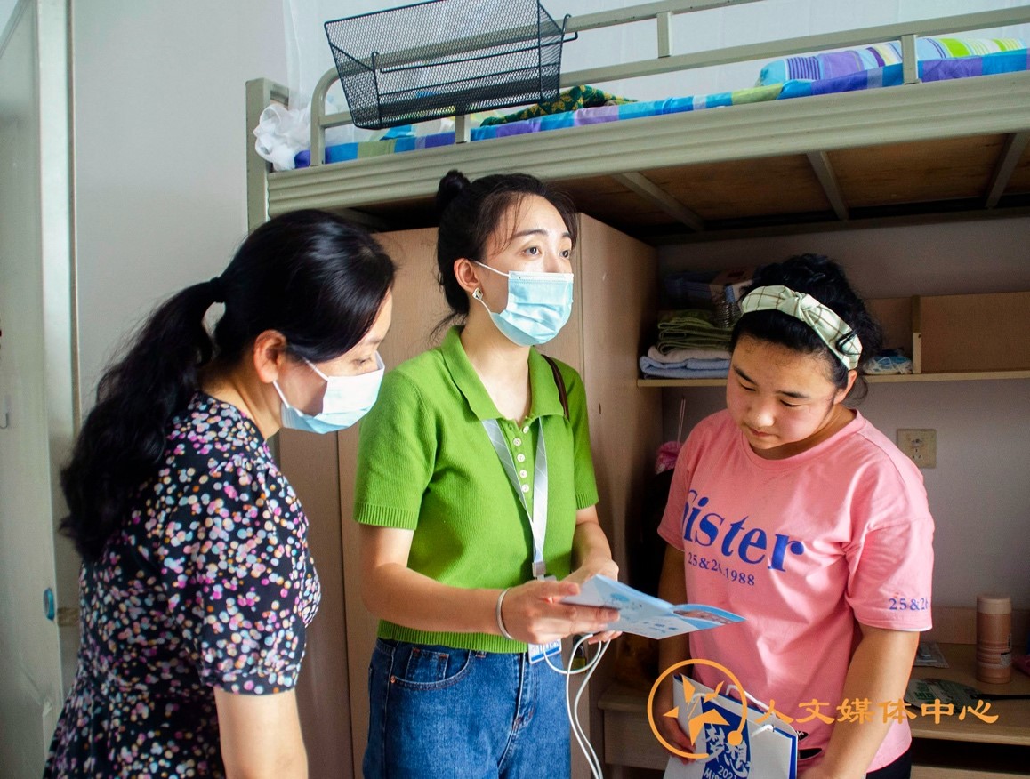 同一时间,新葡的京集团8814副经理胡红、团委副书记刘晗悦老师前往21级女生宿舍,对新生表示欢迎。