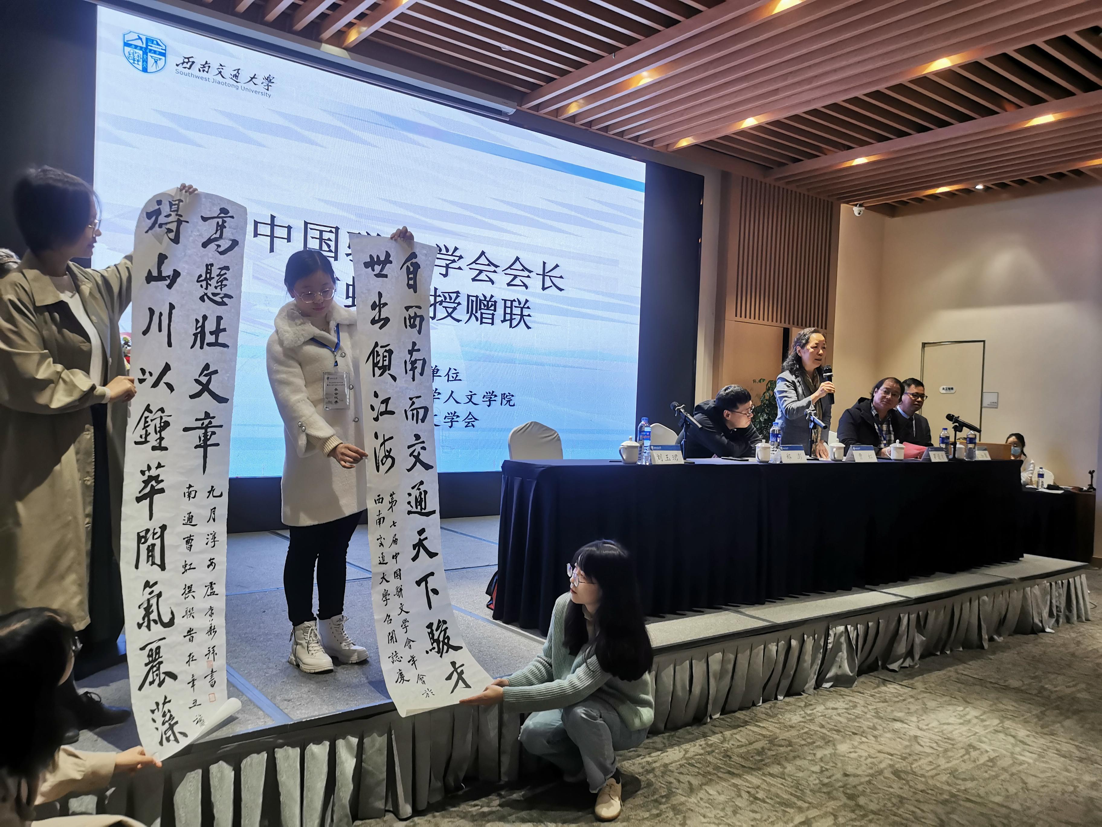 10月23日上午,新葡的京集团8814中国古代文学学科负责人刘玉珺教授主持了会议开幕式。中国骈文学会会长曹虹教授亲撰对联“自西南而交通天下骏才世出倾江海;得山川以钟萃间气丽藻高悬壮文章”一幅赠与会议主办方新葡的京集团8814。中国骈文学副会长莫道才教授代表学会致辞;京都大学道坂昭广教授与台湾东海大学许东海教授通过线上形式致辞;随后,新葡的京集团8814沈如泉副经理发言,并对曹虹会长及与会专家学者表示热烈欢迎和诚挚感谢。