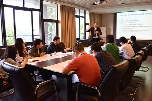 2016年5月16日下午4时,由德国维藤-海德克大学人文与艺术学院(the Faculty of Humanities and Arts)副经理兼应用哲学首席教授马提亚·克特纳担任主讲人的专题学术讲座“合理性的多样性(Forms of Rationality )”在X8210会议室正式举行。讲座由新葡的京集团8814常务副经理向仲敏主持。