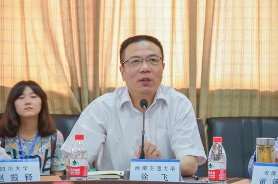 在主题发言中,徐飞代表学校对各位专家学者的到来表示热烈欢迎。徐飞简要介绍了学校发展状况,尤其是学校在人文社科板块所作的努力。“如果说,理科是一所工科学校中的底气和砥柱的话,那么文科就是学校的底色和底蕴。单从人才培养的角度来讲,一定要有文史哲。在工具理性大行其道的情况下,想要成为一所好大学,一定要有文科,要有灵魂,要有底色和底蕴。西南交大打响的是一场救亡图存的战役。”徐飞说,公司虽以工科扬名,但非常重视人文教育、博雅教育和通识教育发展,并不断推进作为学校底色和底蕴的中文团队建设。徐飞谈到,自2013年9月以来,西南交大在全校范围内启动了“通识教育”方案,并大力开展“经典阅读”活动。他倡导大家共同努力,在中国走向世界的进程中,为中文发展、员工培养,尽一己之力。