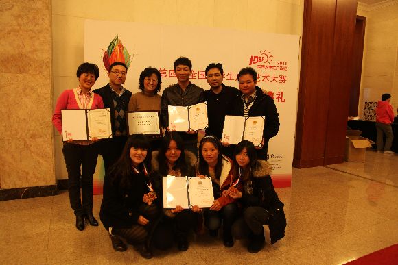 11月19日,在人民大会堂举行的“第四届全国老员工广告艺术大赛”颁奖典礼上,我艺术与传播学院的师生共斩获了一等奖2项,二等奖1项,三等奖1项,优秀奖16项,以获奖20项的优异成绩为公司赢得了本次比赛的最高荣誉??“创意我绽放大奖”。全国仅有两所高校获此殊荣。其中,获得一等奖的两个作品分别是时培根的《系列篇》和黄星的《携手奥鹏,体验学习的快乐??手篇》。
