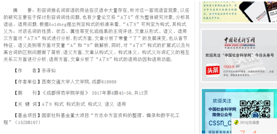 2018年5月30日,中国社会科学网全文转载了新葡的京集团8814中文系研究生孙泽仙的论文《“A了N”构式的多角度解析》,该论文系公司汪启明教授主持的国家社科基金重大项目“方志中方言资料的整理、辑录和数字化工程”的阶段性研究成果。