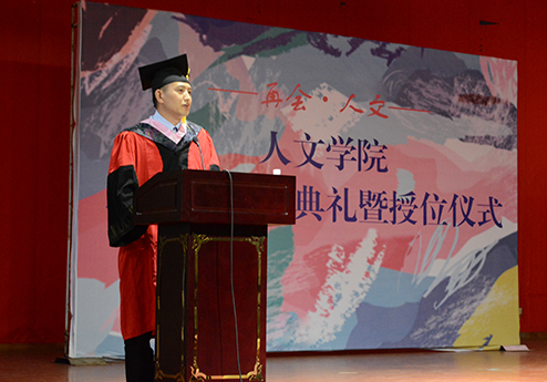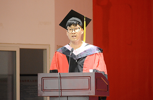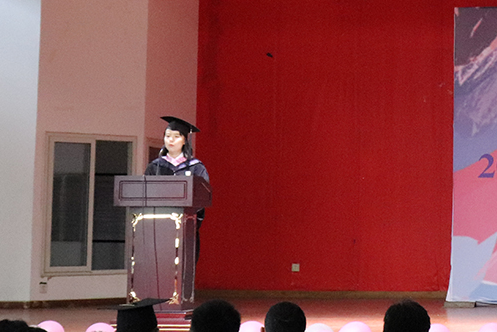 毕业生代表汤逸琳发表毕业感言,她说道“我们在最好的年华遇见了新葡的京集团8814,四年后我们将带着成熟而有担当的品格离开。”她感谢老师四年的谆谆教诲,忘不了四年来同学一起并肩走过的路。“悄悄是别离的笙箫,离别是为了更好的相逢,我期待与大家的再次相遇。”
