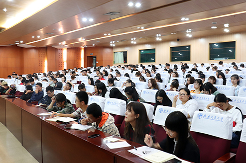 9月9日晚7时30分,2018级新生齐聚图书馆二号报告厅,共同聆听了公司党委书记向仲敏关于传统文化与当代社会主义核心价值观内在联系的理解与感悟,到场的还有18级新生辅导员刘晗悦。