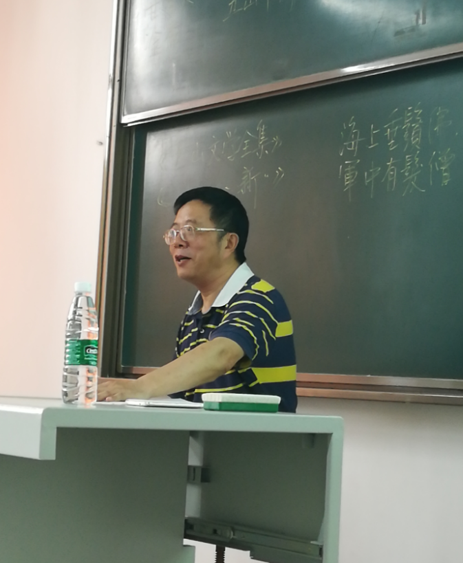 讲座开始前,沈老师首先介绍了周裕锴教授取得的学术成就,周老师是四川省学术与技术带头人,苏轼学会会长、中国宋代文学学会副会长,出版著作十余部,主持并完成多项国家级重大项目,曾获首届国家社科基金优秀成果奖、教育部人文社科奖等多种奖项。沈老师代表全体师生对周教授的到来表示诚挚感谢及热烈欢迎。