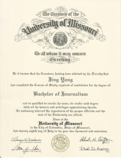 本科学习的两年时间里,我一共学习了24门课程,共计71个学分。其中包括在Columbia Missourian (密苏里人报纸)和Vox Magazine(Vox 杂志)分别实习了一个学期,以及参与全球实习项目中的华盛顿实习项目,在华盛顿的中国中央电视台北美分台实习三个月。这几次的实践让我受益良多。在密苏里人报纸的实习内容主要是在高等教育部门担任记者,采访报道与哥伦比亚市高等教育相关的新闻事件。每周我都要根据排班表的时间到报社值班,值班的任务包括突发新闻事件的采访报道以及常规部门新闻的报道。同时我还必须参与报社美洲两次的选题大会,听取其他部门记者以及高级新闻主编对于未来几日报纸内容的安排。实习期间最令我印象深刻的是一篇关于密苏里大学医学院两位教授最新的研究成果的报道。该研究成果能够延长被捐赠的视网膜在离开人体以后的使用寿命。在这次的采写过程中,我学习到了如何将复杂的医学报告进行简单化处理,将其转化为一般读者能够理解的简单文字。同时也学会了如何更好地吸引读者的阅读兴趣,如何安排报道内容的前后顺序。