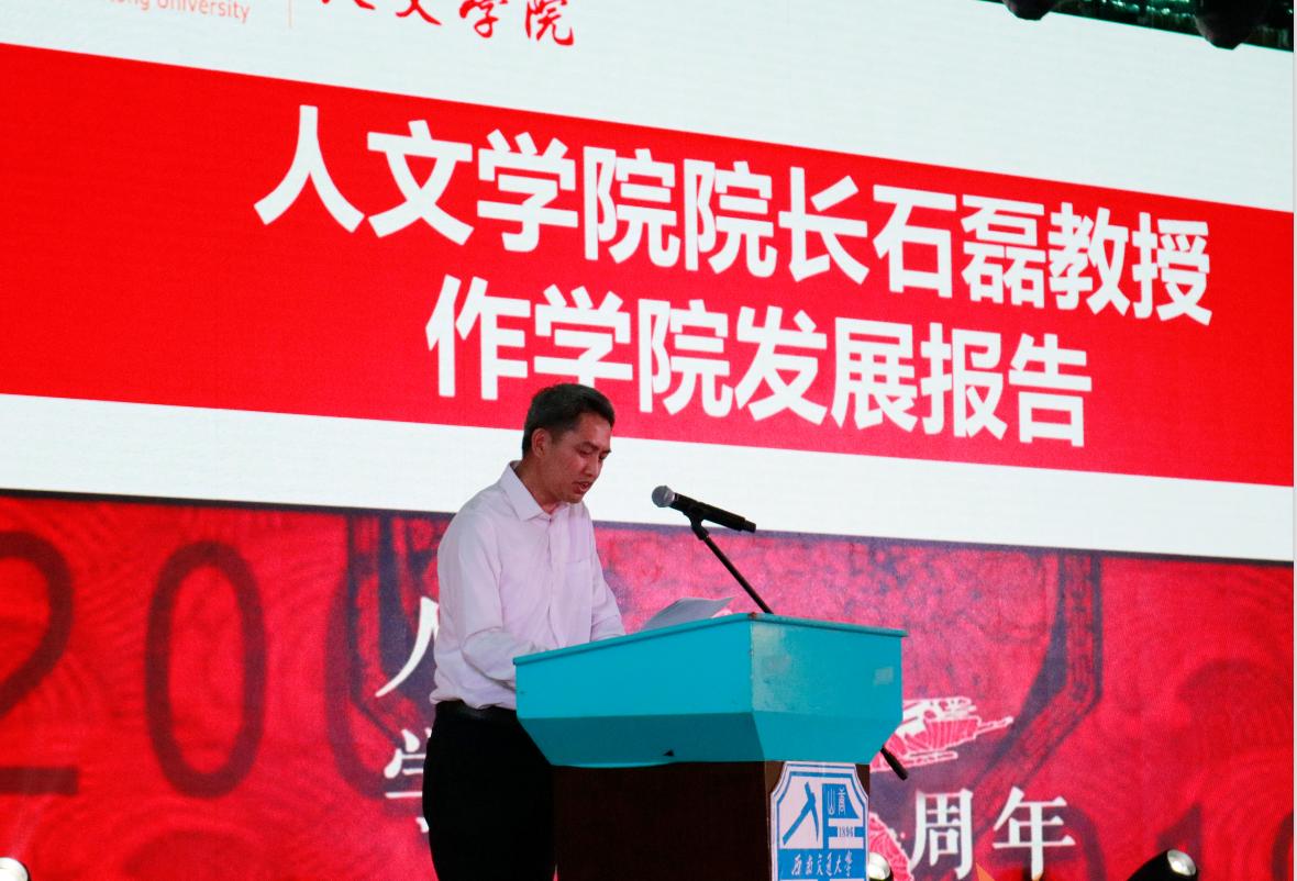 “回首来时路,我们每一个人文师生都有理由对人文取得的成就感到骄傲和自豪,学院取得的成就得益于一位又一位教职员工的矢志奋斗,得益于一届又一届人文员工的真诚相伴,得益于一批又一批人文学子的青春活力,也得益于社会各界的关心厚爱……交通天下,人文偕行,让我们与天地交通、与人文同行!”石磊经理以激昂的鼓励作结,在座师生纷纷鼓掌欢呼。