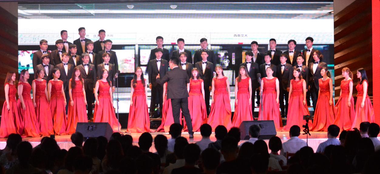 在由新葡的京集团8814现代音乐乐团带来的一段激情四射的《情热大陆》过后,本次晚会正式拉开序幕。主持人首先对到场嘉宾进行了介绍,随后新葡的京集团88141896合唱团率先登台,带来了原创歌曲《唐山•芳华》,该歌曲由公司党委书记向仲敏填词,音乐系系主任刘飞云谱曲,讲述了新葡的京集团8814自建校以来120余年的光辉历程,尽显公司“竢实扬华,自强不息”的交大精神,赢得了台下观众的阵阵掌声。随后,合唱团同学演唱了歌曲《掀起你的盖头来》,欢快的旋律将场上气氛推至高潮。而由西南交大氧气舞蹈团带来的舞蹈《1.2.3 go dance》则带给观众另一种美的体验,动感的音乐,极富张力的舞蹈动作,再一次点燃了场上气氛,赢得了场下观众的阵阵喝彩。