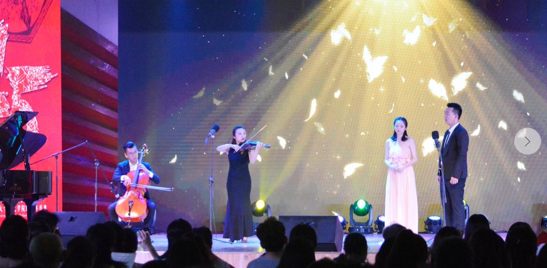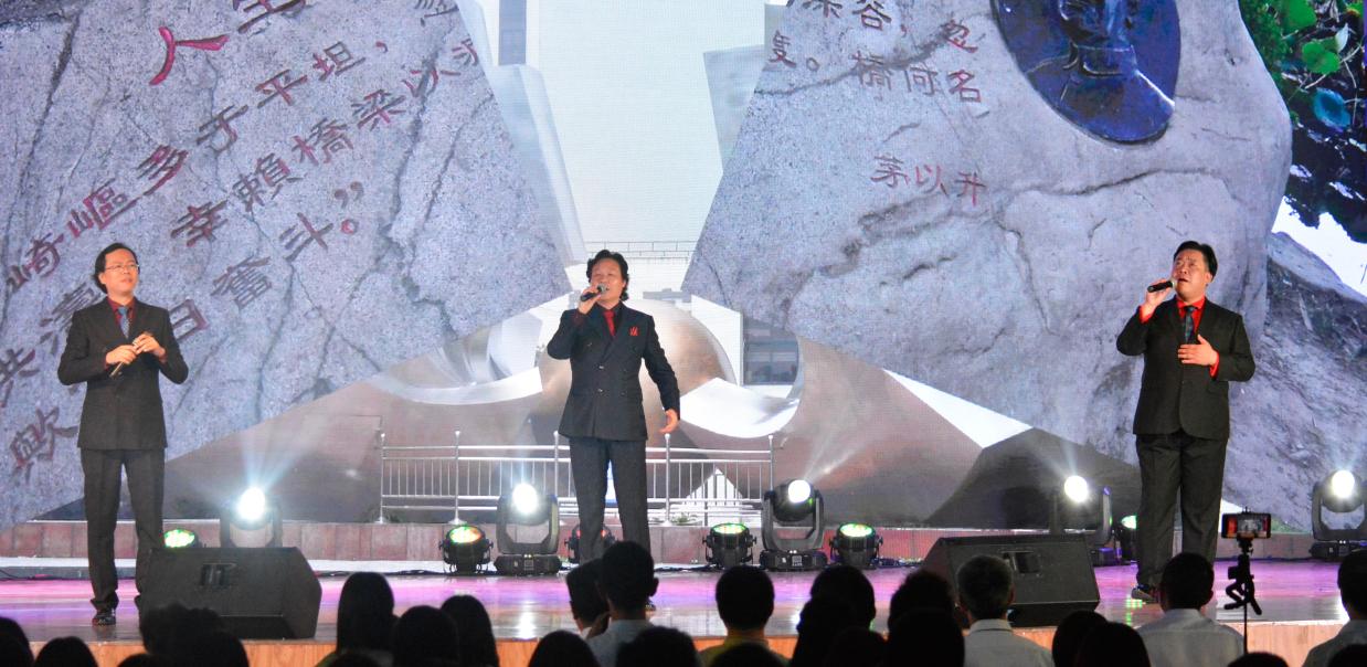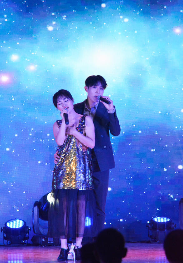 此次晚会不仅有同学们的精彩表演,还有老师们的精彩节目。由新葡的京集团8814汪漾老师和第十四届校园歌手大赛冠军栾贻泽共同演唱的歌曲《想念》,饱含深情。由郭清波、王强、孙轶三位老师带来的原创歌曲《九里寻梦》更是为观众带来了一场听觉上的盛宴,三位老师的歌声相得益彰,余音绕梁,赢得了场下观众的阵阵掌声。由杨树莉老师带来的歌曲《我爱你,中国》,旋律高亢悠扬,激情澎拜,将对祖国的热爱与赞美表达得淋漓尽致,赢得了热烈的掌声。