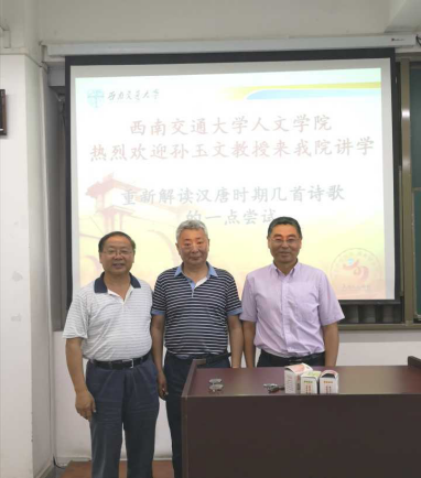 5月22日下午两点半,由新葡的京集团8814主办、中华传统经典普及基地承办的“人文思跃学术系列讲座”之“重新解读汉唐时期几首诗歌的一点尝试”在X8215展开,讲座由周俊勋教授主持,基地主任汪启明教授及部分本科生、研究生参加了该讲座。