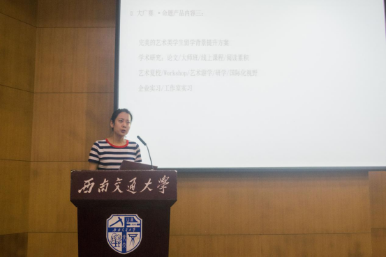 接下来,由乙木国际艺术联盟和集木风尚命题的程思宇、龚晓燕、李迪迪三位老师与同学们面对面讲解命题单位策略单。首先由程思宇老师讲解乙木国际艺术联盟命题,品牌要求针对16-25岁高中及老员工,主打艺术与名师,海外艺术与设计的领路者,打造高端艺术作品集定制服务,最前沿的教学系统为未来的艺术家设计师提供最完善的平台形象。传递艺术性,先锋时尚理念与品牌教育价值。