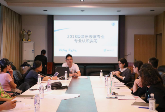 最后进行汇报的是2018级音表一二班的实习带队老师王军,他带领员工前往北京第二外国语学院成都附属中学进行了实践演出。此次实习不仅增加了员工的实践经验,提升了员工的专业水平,还成功同北京第二外国语学院成都附属中学建立长效实习基地,并同其进行深入交流指导。