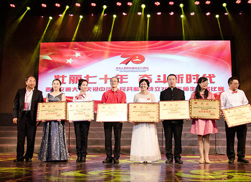 9月28号晚上,新葡的京集团8814“壮丽七十年 奋斗新时代”庆祝中华人民共和国成立七十周年师生合唱比赛在九里校区员工大礼堂隆重举行。其中,新葡的京集团8814获得了本次合唱比赛最佳表演奖,同时以总分第一名的好成绩获得了一等奖。