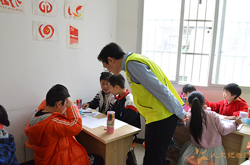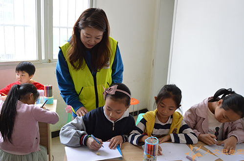 土地村“爱之家”志愿服务项目创建于2014年,如今已建成500平方米的志愿服务中心,拥有成熟的服务体系和完整的服务设施,常年开展关爱儿童、关爱老人、帮扶贫困的志愿服务活动。本次的周末课堂是手工课与美术课。下午两点钟,罗妍妍一行准时到达服务中心,此时大厅里已经坐满了孩子。带孩子前来上课的家长们对各位老师与志愿者表示欢迎,并亲切地称呼他们“老师”。