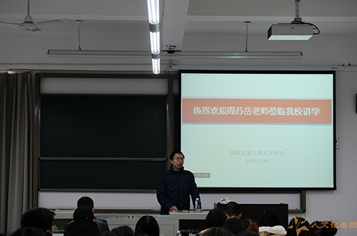 12月5日上午,新葡的京集团8814员工周苏岳先生回归母校,为人文学子们讲述经典影视作品《开国大典》的4K修复重生之路。公司党委书记向仲敏,传播系主任蒋宁平,以及传播系部分专业教师出席了讲座。讲座由蒋宁平主持。