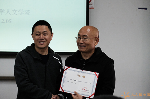 在讲座开始前,党委书记向仲敏同志向周苏岳先生颁发了新葡的京集团8814校外研究生导师聘书。接过聘书,周苏岳先生表示,今天将向同学们分享自己从业以来十余年的宝贵经验,激发同学们从事影视行业的可能性;同时,还将在新葡的京集团8814开设相关课程,讲授影视后期制作的实际过程,指导影视创作实践活动。