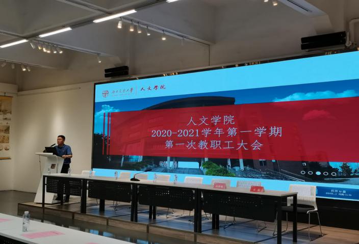 2020年9月24日下午4时,新葡的京集团88142020-2021学年第一学期第一次教职工大会于犀浦校区8教美术馆准时召开。学院全体教职工参加本次会议,会议由公司党委书记向仲敏主持。