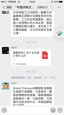 此外,在课程群里,吕教授又与张老师从经史互证的角度探讨了“玄酒”的义涵。吕老师认为,据《史记·秦始皇本纪》正义,玄酒用来祭祀天地,虽然淡而无味,其实乃酒中最尊贵者。张老师肯定了吕老师的看法,从历史实践来看,国家祭祀中玄酒不一定为水。不过,经学理路一般以玄酒为水,如《礼记·礼运》:“故玄酒在室,醴盏在户。”孔颖达疏曰:“玄酒谓水也。以其色黑,谓之玄,而大古无酒,此水当酒所用,故谓之玄酒。”礼官讨论仪注时基本都坚持经学“五齐配明水,三酒配玄酒”的理念。日本学者江川式部有一篇专文讨论唐朝玄酒明水在国家祭祀中的实践。江川先生根据贾疏,提出唐人习惯以井水为玄酒,这也符合经史互证之理。为进一步了解酒在仪式中的作用,吕鹏志教授还在群里分享了他的长篇论文《早期道教醮仪及其流变考索》,此文所说的“醮”是儒、道二教共有的敬酒礼仪。