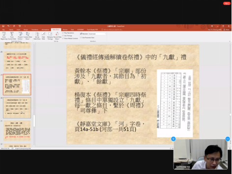 2020年9月27日20时20分,新葡的京集团8814“中国宗教文献”线上课程迎来了第三讲,本讲主题为“《礼》学简述暨《仪礼经传通解》解题——以郊庙时祭中的‘九献’仪式为例”,主讲人为香港中文大学历史系助理教授张晓宇。