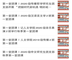 2020年新葡的京集团8814青春系列微团课,分为青春实践微团课,青春生活微团课、青春传统文化微团课三个板块,共6期、10余篇推送、6次线上直播活动,实现全体2020级新生参与;制作安全知识宣传教育微信推送达12期,总阅读量近3000次,取得了良好的效果。