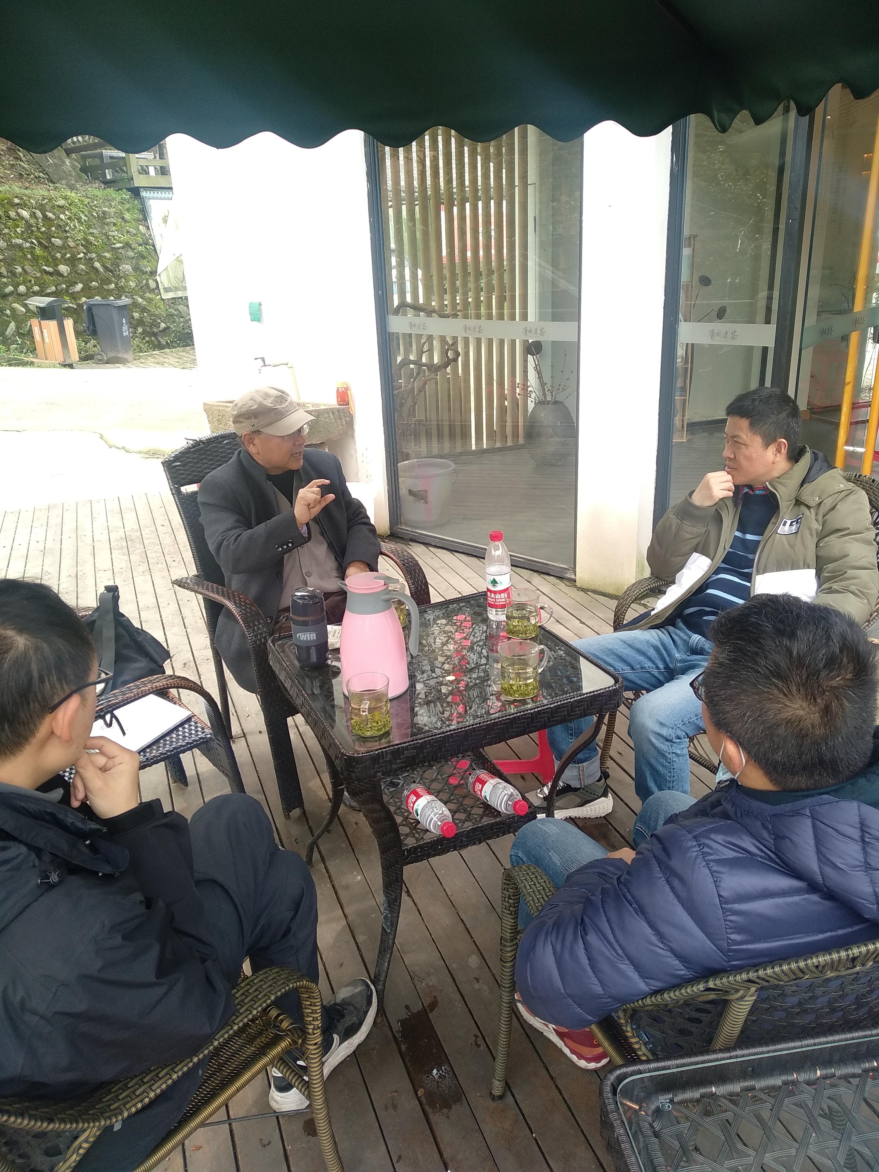 等待制茶的当儿,老师们来到茶园坝子里品茶。“汪老师,给我们讲讲三星堆的新发现呗!”廖恒老师笑着说。大家都不约而同拿起茶杯,围坐在蜀方言专家汪启明教授旁边。汪老师放下手中的书,如数家珍般讲起了近日“再惊天下”的三星堆考古发现,如何为进一步证实“蜀文化是中华文明的重要源头之一”而作注。老师们时而沉思,时而点头,讨论热烈,其乐融融。再加上茶香袅袅、新泉涓涓,好一幅“茶林问道图”!
