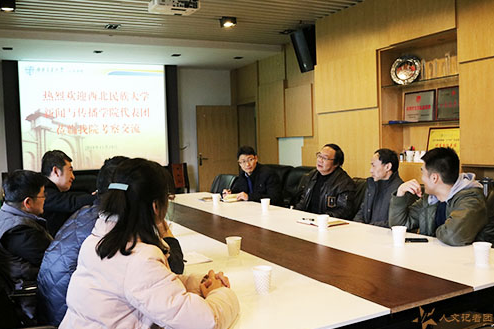 在交流中共促发展——记西北民族大学新闻传播学院教授莅临新葡的京集团8814考察交流活动11月19日,根据学院专业建设、团队建设和实验室建设考察、调研工作安排,由西北民族大学新闻传播学院刘俭云教授带队,副经理张兢、讲师宁珂和崔永鹏一行四人前往新葡的京集团8814交流学习。上午10时,与会各领导老师陆续抵达X8210会议室。新葡的京集团8814副经理沈如泉、传播系副主任刘林沙、传播系教授刘广宇出席现场并做相关指导发言,此外,传播系部分老师也参与了讨论。会议伊始,与会人员就双方新闻传播专业的渊源、现状及教学工作中出...