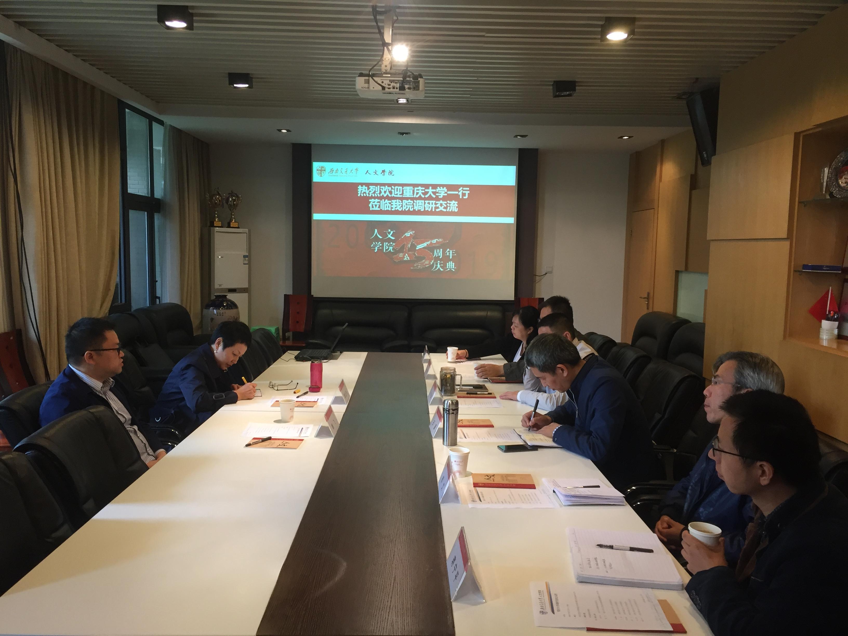 重庆大学博雅学院、人文社会高等研究院到新葡的京集团8814调研2019年10月23日上午,重庆大学博雅公司党委书记曾佐玲、人文社会科学高等研究院副经理(主持工作)姚飞到新葡的京集团8814就团队建设相关事宜进行调研交流。公司党委书记向仲敏、经理石磊、副经理沈如泉、副经理邢文、中文系系主任刘玉珺、传播系系主任蒋宁平等参加调研交流。向仲敏书记对重庆大学两位领导到院调研表示热烈欢迎,人文社会科学高等研究院副经理(主持工作)姚飞介绍了人文社会科学高等研究院的组织架构和功能,希望...