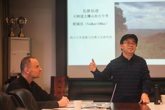德国道教学者欧福克(Volker Olles)副研究员来院作“长秋仙迹——天师道主簿山治古今考”学术讲座 2019年11月8日下午,德国道教学者、四川大学道教与宗教文化研究所特聘副研究员欧福克(Volker Olles)应邀来公司X8210会议室作题为“长秋仙迹——天师道主簿山治古今考”的学术讲座。欧福克又名欧理源,德国波恩人,先后在波恩大学、柏林洪堡大学取得硕士、博士学位,其主要研究方向为四川道教之近现代史与现状、中国宗教中的神圣空间(宗教地理)、四川刘门及法言坛、民间斋醮科仪、宫观(寺庙)历史与文化、传统宗教出版...
